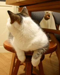 2003年8月、1歳で猫の保護ボランティアから引き取る。好奇心旺盛でフレンドリー。毎日の出迎えを欠かさない律義者。パンやお菓子類の匂いが大好きだが、日々の食事は療法食。11年と2ヶ月一緒に暮らした。