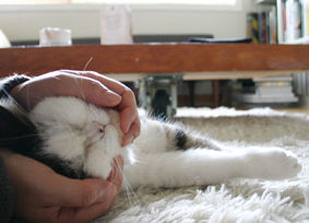 2003年8月、1歳で猫の保護ボランティアから引き取る。好奇心旺盛でフレンドリー。毎日の出迎えを欠かさない律義者。パンやお菓子類の匂いが大好きだが、日々の食事は療法食。11年と2ヶ月一緒に暮らした。→メモリアルまこ