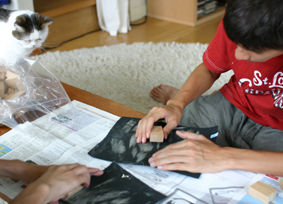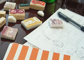 はんこ職人さん(女子)とまこはんこの打ち合わせ。