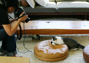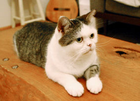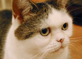 2003年8月、1歳で猫の保護ボランティアから引き取る。好奇心旺盛でフレンドリー。毎日の出迎えを欠かさない律義者。パンやお菓子類の匂いが大好きだが、日々の食事は療法食。11年と2ヶ月一緒に暮らした。→メモリアルまこ