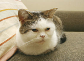 2003年8月、1歳で猫の保護ボランティアから引き取る。好奇心旺盛でフレンドリー。毎日の出迎えを欠かさない律義者。パンやお菓子類の匂いが大好きだが、日々の食事は療法食。11年と2ヶ月一緒に暮らした。→メモリアルまこ
