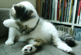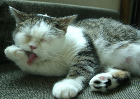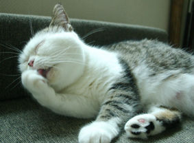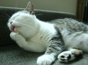 2003年8月、1歳で猫の保護ボランティアから引き取る。好奇心旺盛でフレンドリー。毎日の出迎えを欠かさない律義者。パンやお菓子類の匂いが大好きだが、日々の食事は療法食。11年と2ヶ月一緒に暮らした。→メモリアルまこ