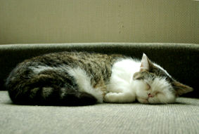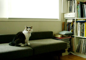 2003年8月、1歳で猫の保護ボランティアから引き取る。好奇心旺盛でフレンドリー。毎日の出迎えを欠かさない律義者。パンやお菓子類の匂いが大好きだが、日々の食事は療法食。11年と2ヶ月一緒に暮らした。→メモリアルまこ