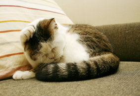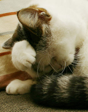 2003年8月、1歳で猫の保護ボランティアから引き取る。好奇心旺盛でフレンドリー。毎日の出迎えを欠かさない律義者。パンやお菓子類の匂いが大好きだが、日々の食事は療法食。11年と2ヶ月一緒に暮らした。