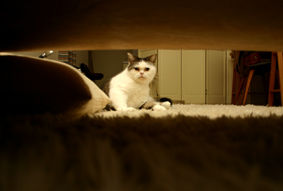 まこより1ヶ月遅れで引き取る。京葉道路でホームレスの人に保護された。極度の恐がりでひきこもり。しかし、ブラッシングは大好き。秋刀魚に目がない。最近は自ら甘えてくるようになった。