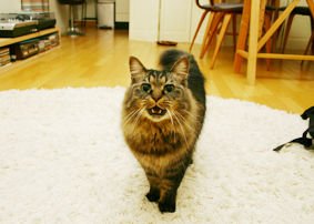 2003年8月、1歳で猫の保護ボランティアから引き取る。好奇心旺盛でフレンドリー。毎日の出迎えを欠かさない律義者。パンやお菓子類の匂いが大好きだが、日々の食事は療法食。11年と2ヶ月一緒に暮らした。→メモリアルまこ
